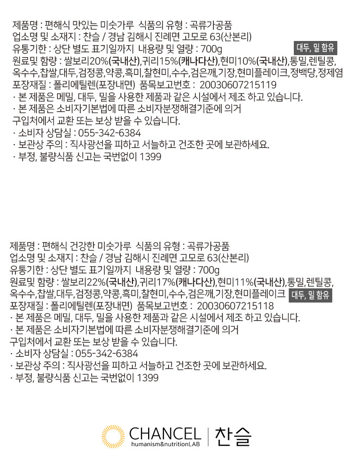편해식 미숫가루 2종(맛있는미숫가루700g+건강한미숫가루700g)
