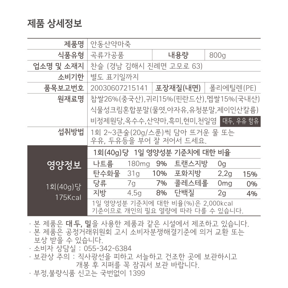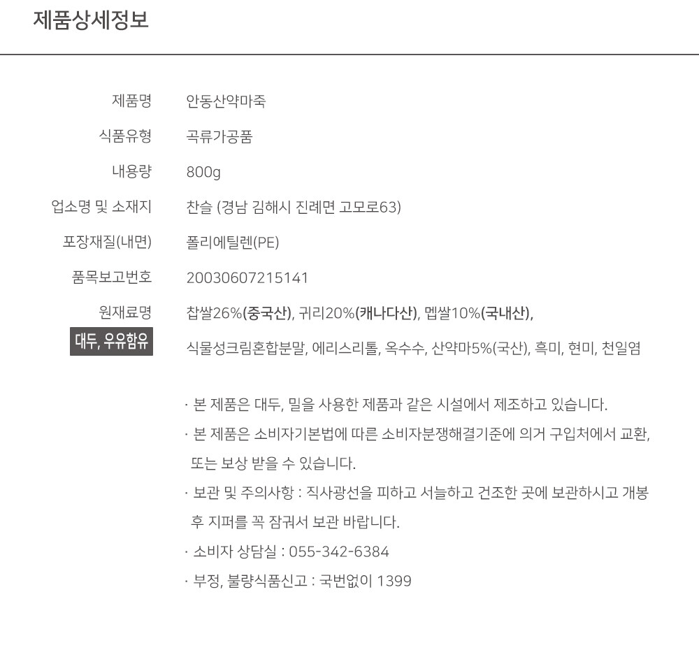 안동산약마죽 800g